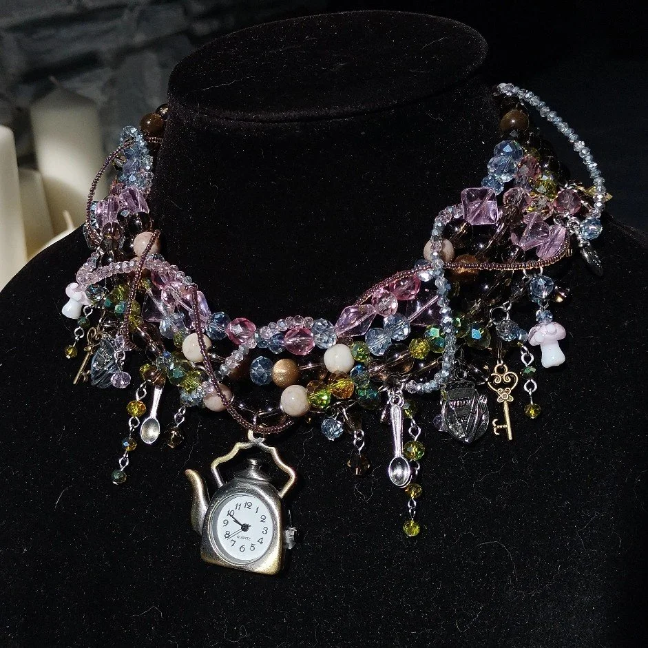 Shop a collection of necklaces and earrings inspired by Alice in Wonderland. Most pieces are 1-of-1 and will not be remade once they sell, so take your pick quick!