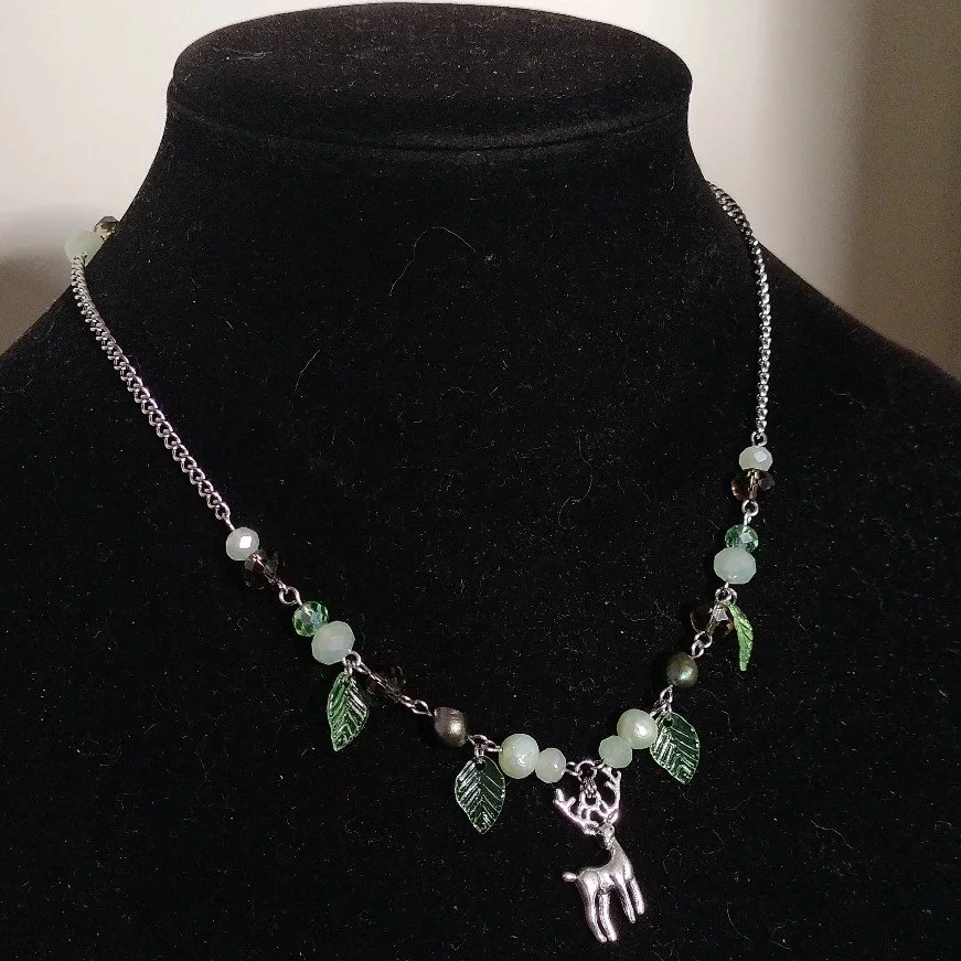 A gorgeous simple necklace adorned with mushrooms, birds and a deer charm. Perfect for yourself or the forest fairy in your life.
